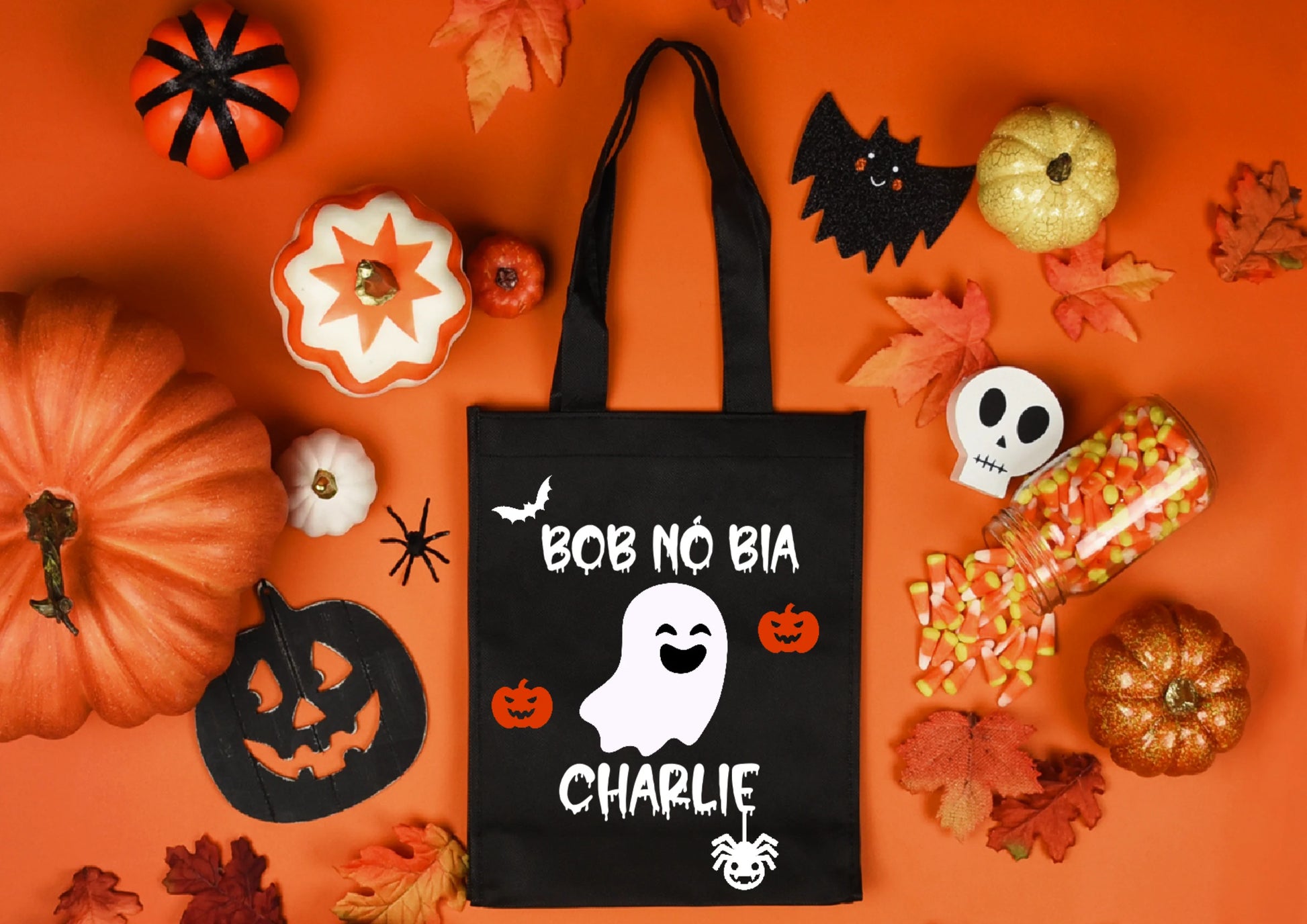Personalised Irish language Bob nó Bia tote bag - Perfect for keeping your milseáin safe on Oíche Shamhna.